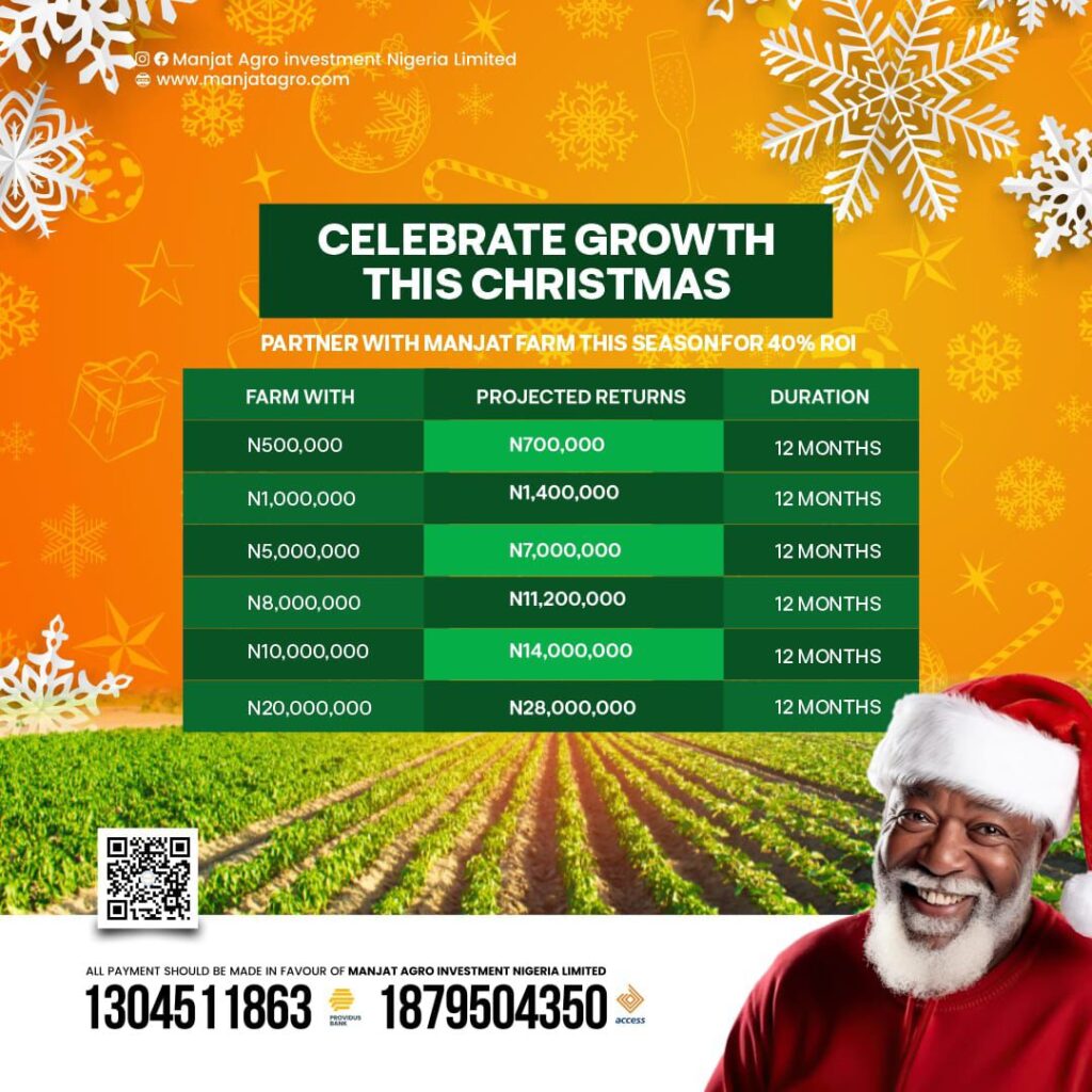 This festive season, we invite you to join us in spreading joy and exploring the rewarding opportunities that agriculture offers. Whether you’re looking to partner with us, invest in our farm projects, or simply stay connected to our journey, there’s a place for you here at Manjat Farms.
